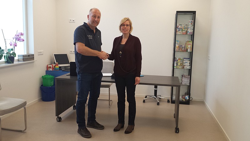 Carlo Hazenberg wenst Jose van Bommel succes met haar activiteiten in het gezondheidscentrum.